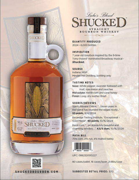 “Let’s get shucked! Branded in subtly corny fashion, ‘Lulu’s Blend’ cuts the corn with 21% rye, taming any corn-based sweetness with lively rye spice tones. Seven years in the barrel has rounded the edges nicely without killing off the spice or going into overt vanilla territory. It’ll be a treat served neat, or an upgrade to your favorite Bourbon-based cocktails.”